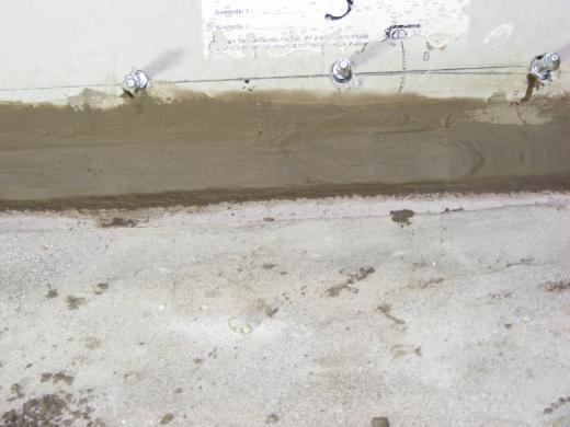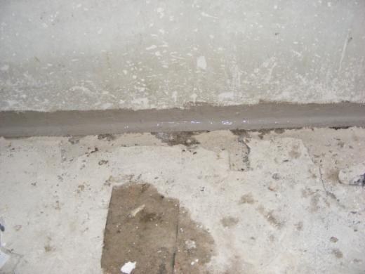 Durch fehlerhafte Bauausführung der Abdichtung im Wand,- Bodenanschluß konnte Wasser in das Gebäude eindringen.